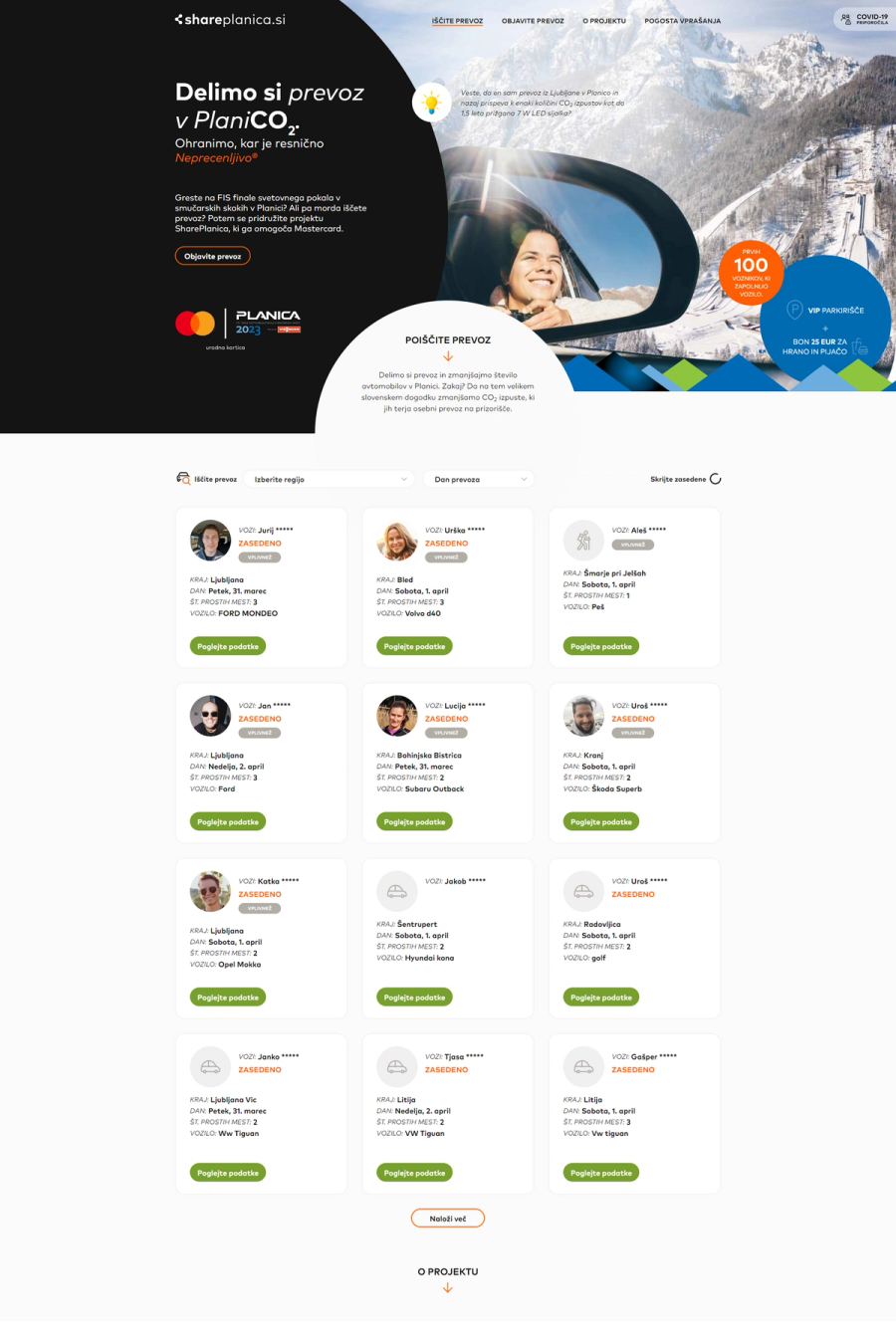 Mastercard skupaj s Planico ustvari car-sharing platformo shareplanica.si pod sloganom Delimo si prevoz v PlaniCO2. Na platformi obiskovalci Planice objavijo svoj prevoz ali se objavljenim prevozom pridružijo. Obiskovalci, ki prevoz delijo in objavijo na shareplanica.si, prejmejo VIP parkirišče in bon za hrano in pijačo v vrednosti 25 eur.