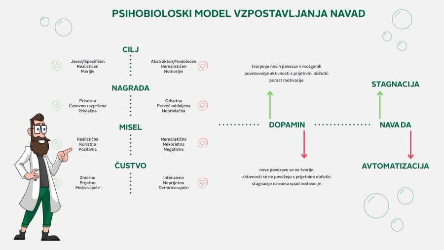 »Navada je železna srajca« je eden izmed tistih pregovorov, ki so ga znanstvene raziskave največkrat potrdile. Ljudje si prizadevamo, da bi se dobrih navad držali, »nalezli«, jih ponavljali. Vendar nam to velikokrat relativno slabo uspeva. Zakaj?Ker se uvajanja novih navad lotevamo brez poznavanja psiholoških procesov, ki odločajo o uspehu. Pa naj gre za zdravo prehrano, pitje Radenske vsak dan, gibanje ali karkoli drugega.