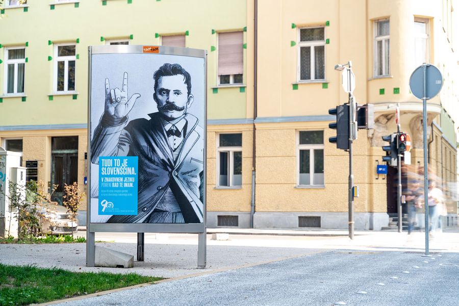K sodelovanju smo povabili ilustratorja Davida Krančana in ustvarili plakate, s katerih so nas očetje slovenskega jezika učili pomena enega znaka in ozaveščali splošno javnost, da je tudi znakovni jezik slovenski jezik. Cankar, Prešeren in Trubar so tisti, prek katerih se od šolskih klopi dalje učimo maternega jezika. Tokrat pa so nas učili znakovnega jezika, ki je vpisan v ustavo Republike Slovenije kot slovenski ter s tem enakovreden in enakopraven jezik.